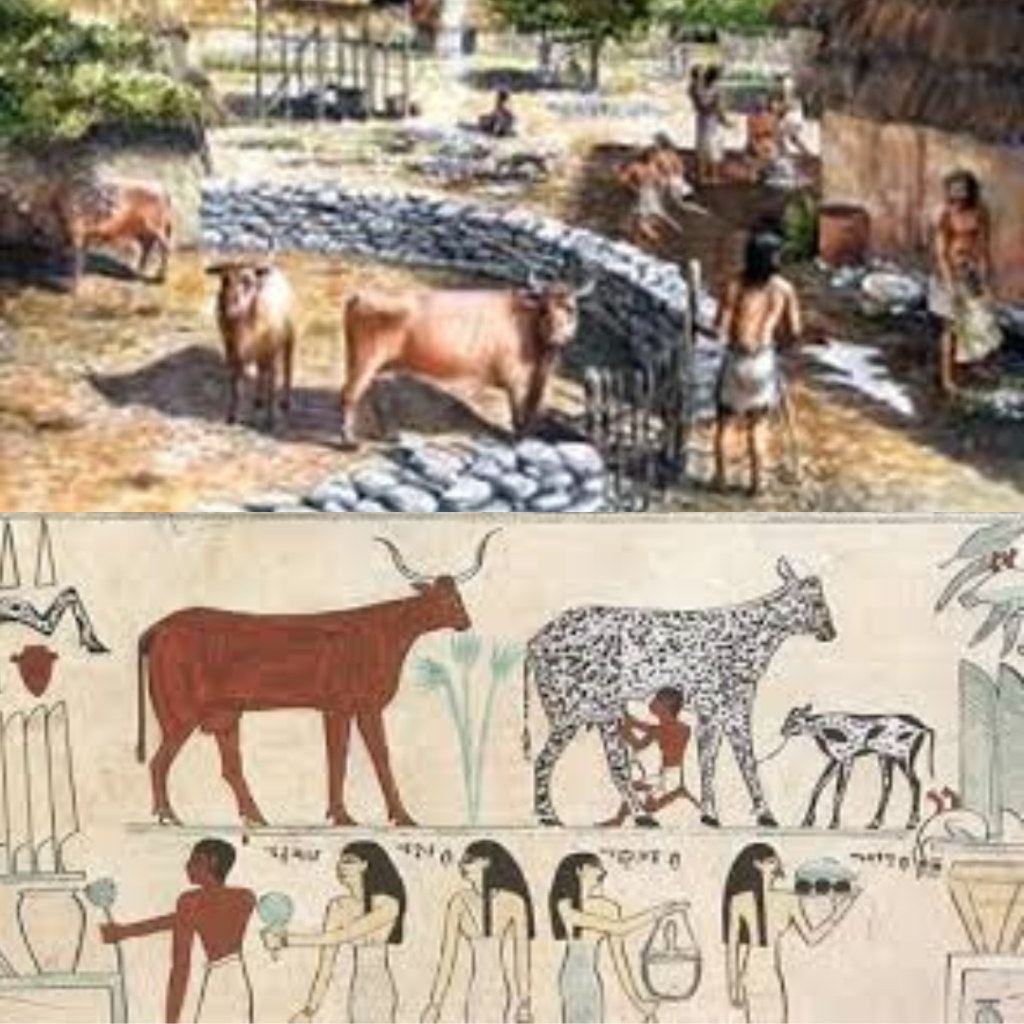 The domestication of cattle marked a significant advancement in the development of human settlements. The cow not only yields an abundance of milk but also oxen provides significant strength, which greatly enhances human labor.